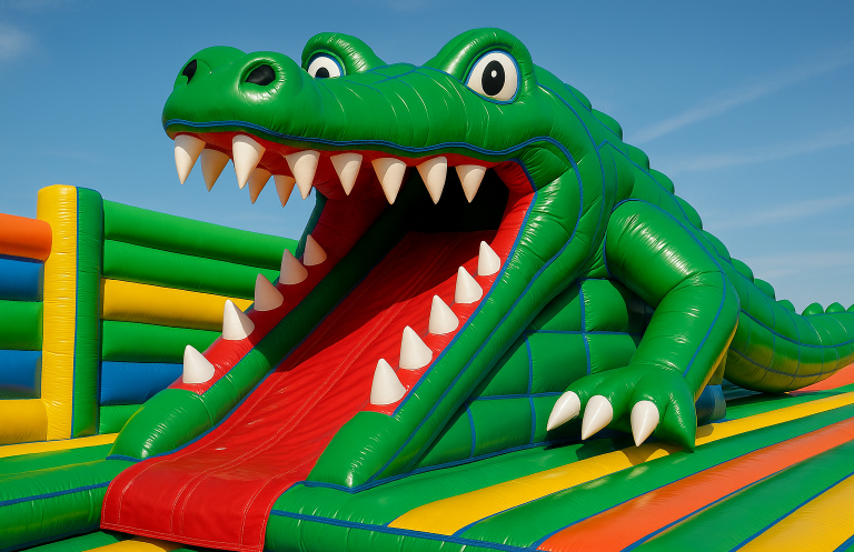 Hinchables con boca diseñada en forma de animales y personajes divertidos, que permiten a los niños entrar y jugar atravesando su interior. Una atracción original y segura para parques y eventos.